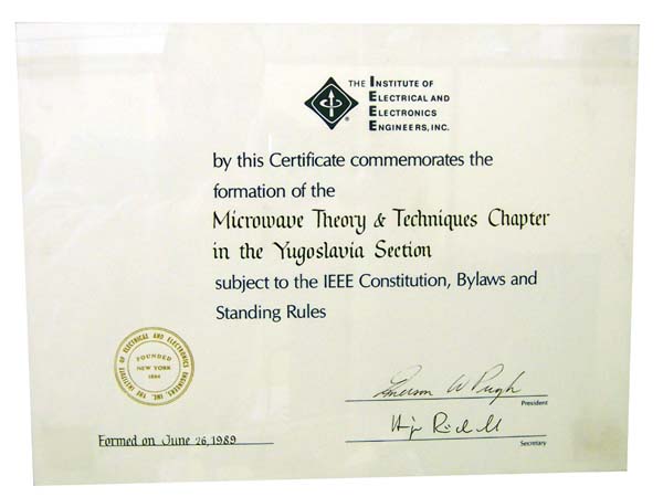 MTT-S has established an award for Outstanding Chapters worldwide that have exhibited exceptional performance. The chapter performance evaluation is based on how effectively chapters have served their MTT-S members considering technical activities, societal activities, educational activities, membership elevation, Fellow and award nominations. The Outstanding Chapter Award is given to no more than 5% of the MTT Society chapters. Serbia and Montenegro IEEE MTT-S Chapter has been selected to be among winners of the 2017 Outstanding Chapter Award. We are honored and proud to be among the best MTT-S Chapters in the world!